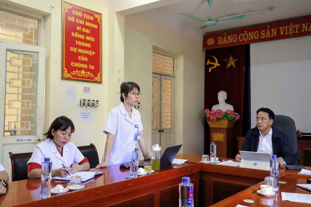 Bác sĩ Tao Thị Hồng Vân, Giám đốc Trung tâm Y tế Mường Lay báo cáo hoạt động của đơn vị với đồng chí Giám đốc sở
