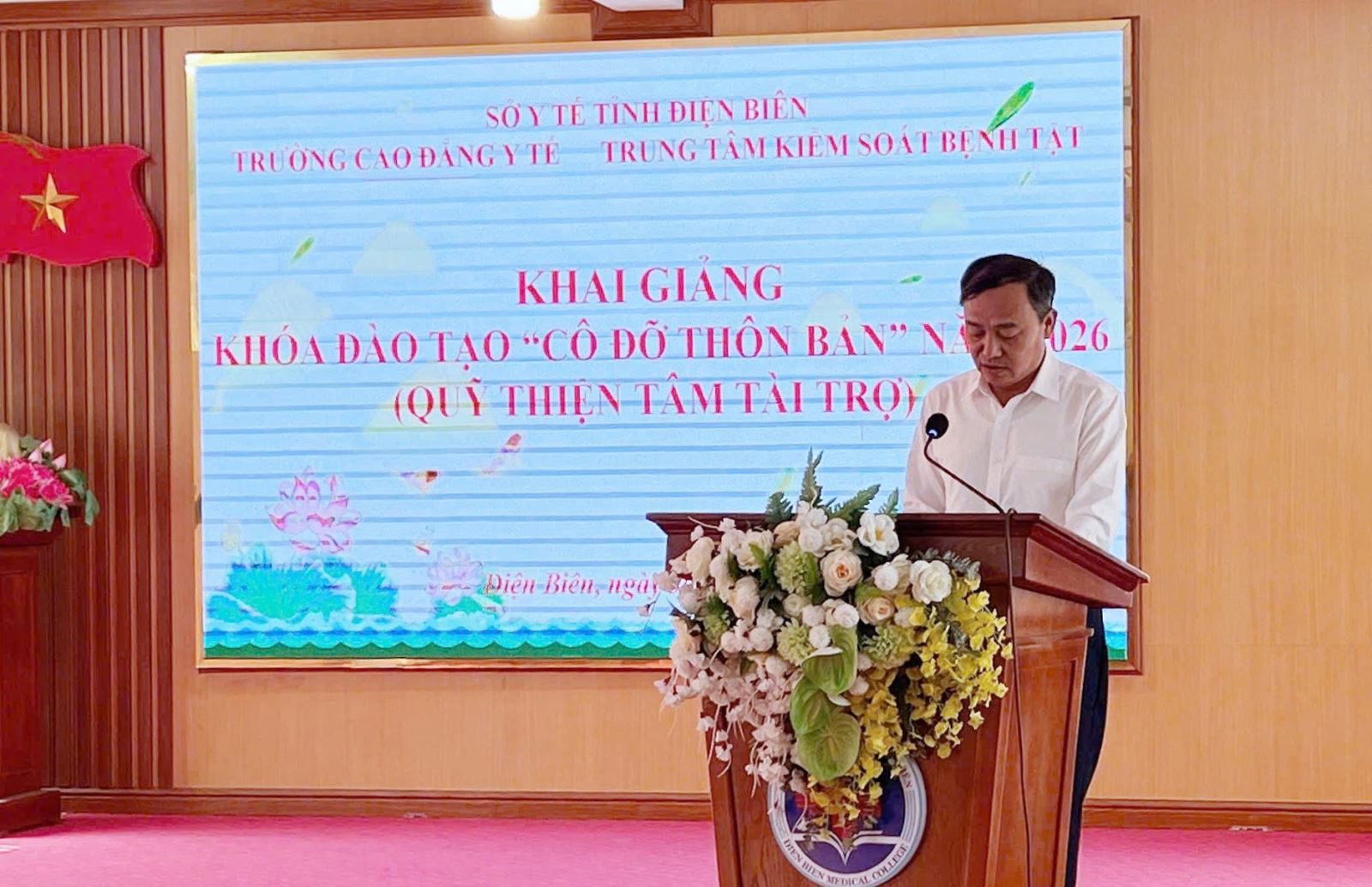 Phát biểu chỉ đạo tại buổi khai giảng đồng chí Vừ A Sử - Phó Giám đốc Sở Y tế đánh giá cao sự chủ động của Trường Cao đẳng Y tế trong việc phối hợp với các đơn vị tài trợ để triển khai khóa đào tạo. Đồng thời nhấn mạnh, tầm quan trọng của đội ngũ cô đỡ thôn bản trong việc thực hiện sứ mệnh chăm sóc sức khỏe bà mẹ và trẻ em tại các bản làng xa xôi, việc đào tạo đội ngũ cô đỡ thôn bản không chỉ là giải pháp tình thế mà là chiến lược lâu dài nhằm thu hẹp khoảng cách về hưởng thụ dịch vụ chăm sóc sức khỏe giữa vùng thuận lợi và vùng đặc biệt khó khăn.