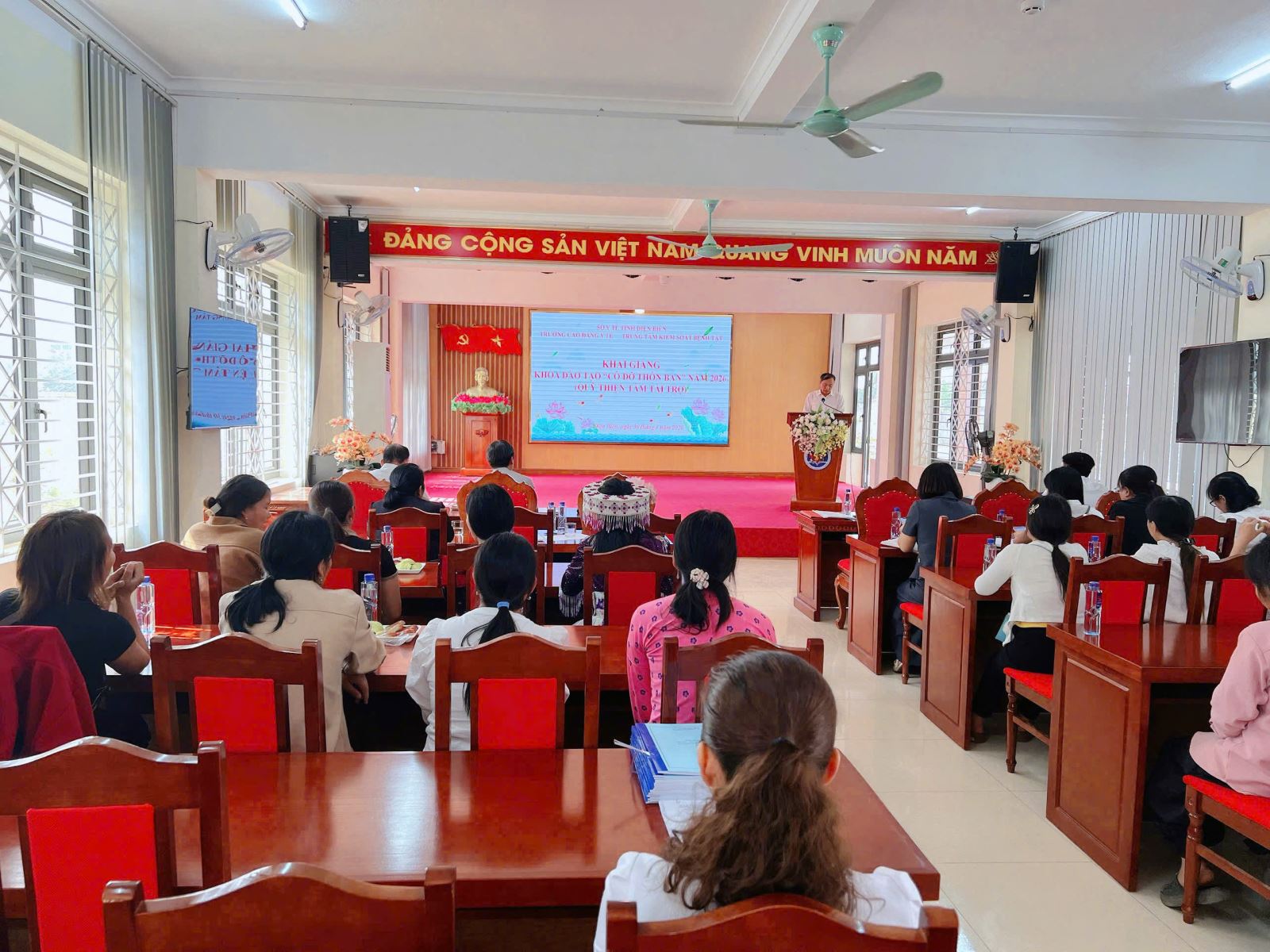 Quang cảnh buổi khai giảng lớp cô đỡ thôn bản.
