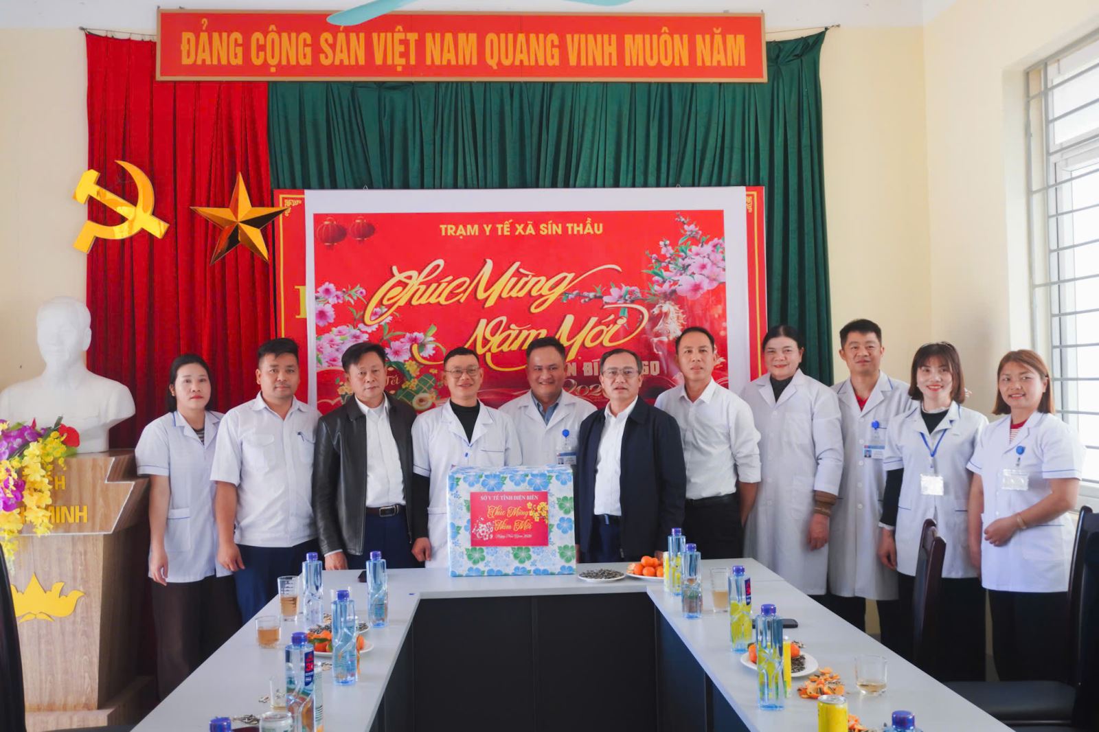 Đoàn công tác Sở Y tế tặng quà và chúc tết cán bộ, nhân viên Trạm Y tế xã Sín Thầu.