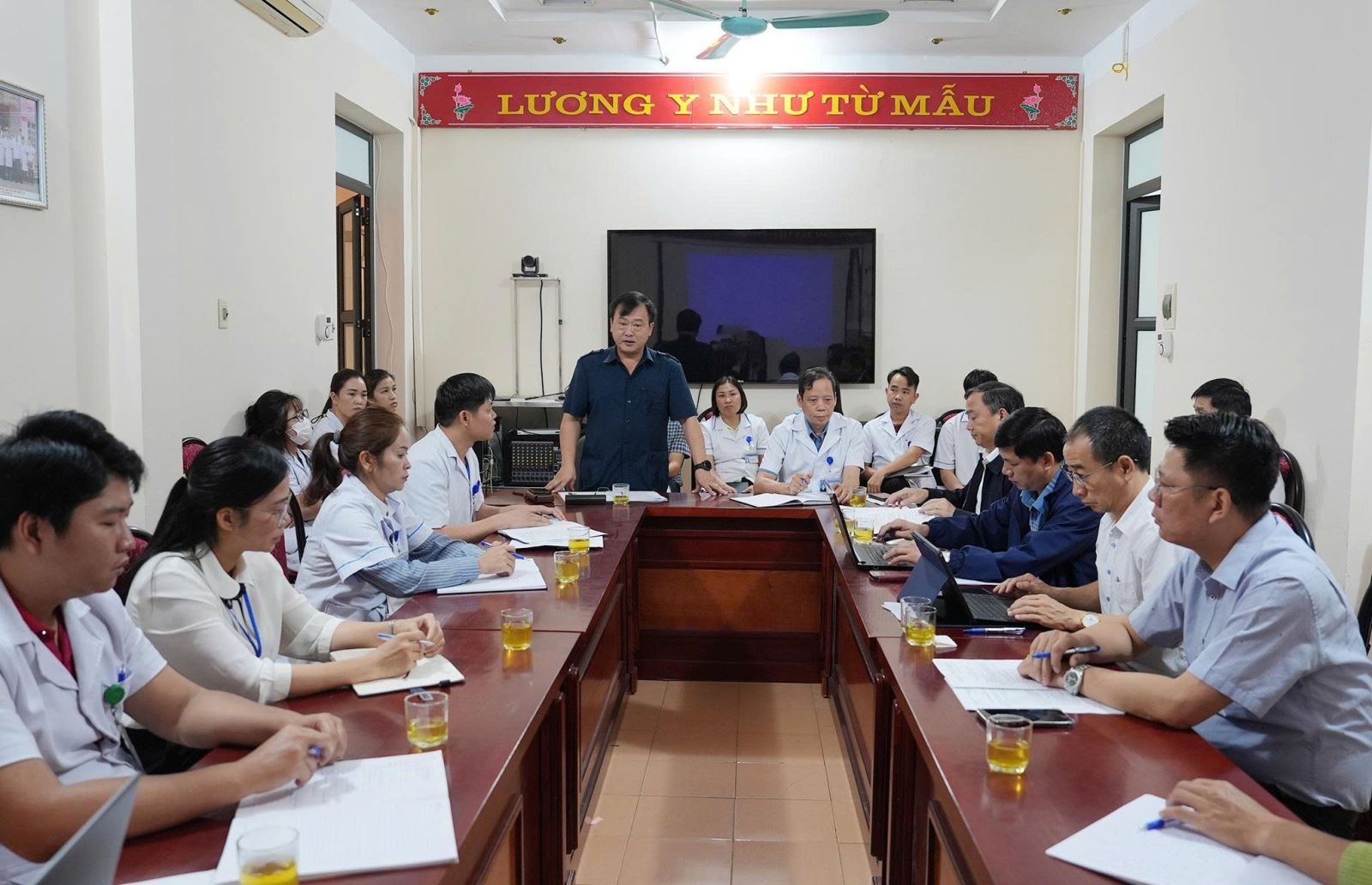 Kết luận buổi làm việc, đồng chí Vừ A Bằng, Phó Chủ tịch UBND tỉnh chia sẻ những khó khăn với Trung tâm Y tế Mường Nhé. Đồng thời nhấn mạnh, trong bối cảnh hiện nay Trung tâm cần chủ động tham mưu cho Sở Y tế trong các hoạt động phòng chống dịch bệnh trên địa bàn, đặc biệt là công tác ứng phó với các tình huống dịch bệnh. Đồng chí Phó Chủ tịch UBND tỉnh nhấn mạnh đơn vị cần rà soát lại nguồn nhân lực, trang thiết bị, thuốc men, vật tư hóa chất đảm bảo các điều kiện đáp ứng công tác phòng chống bệnh lỵ tại xã Nậm Kè với phương châm 4 tại chỗ. Tổ chức hiệu quả công tác phân luồng để vừa đảm bảo hoạt động thu dung diều trị bệnh nhân mắc lỵ, vừa bình thường hóa các hoạt động y tế trên địa bàn. Phối hợp với chính quyền địa phương, cơ quan chuyên môn và lực lượng chức năng, tập trung khẩn trương xử lý, đặc biệt ưu tiên đảm bảo công tác vệ sinh an toàn thực phẩm, nguồn nước sạch, tăng cường công tác truyền thông, thông tin, vận động người dân chủ động thực hiện các biện pháp phòng chống dịch bệnh, hạn chế số ca mắc và tử vong do dịch bệnh, đặc biệt khống chế không để lây lan ra diện rộng.