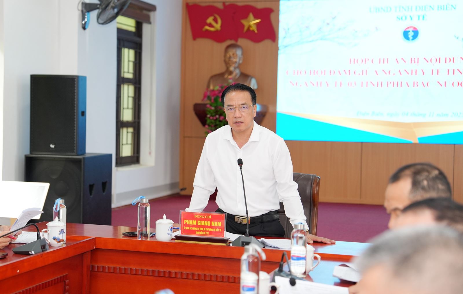 Để tiếp đón đoàn cán bộ của ngành Y tế 03 tỉnh phía Bắc nước CHDCND Lào được trọng thị, chu đáo và tạo ấn tượng tốt đẹp trong khuôn khổ Chương trình hợp tác Y tế giữa tỉnh Điện Biên và 03 tỉnh Bắc Lào. Chiều ngày 04/11, Sở Y tế đã tổ chức họp bàn về công tác chuẩn bị và các nội dung liên quan. Đồng chí Phạm Giang Nam, Giám đốc Sở Y tế chủ trì.
