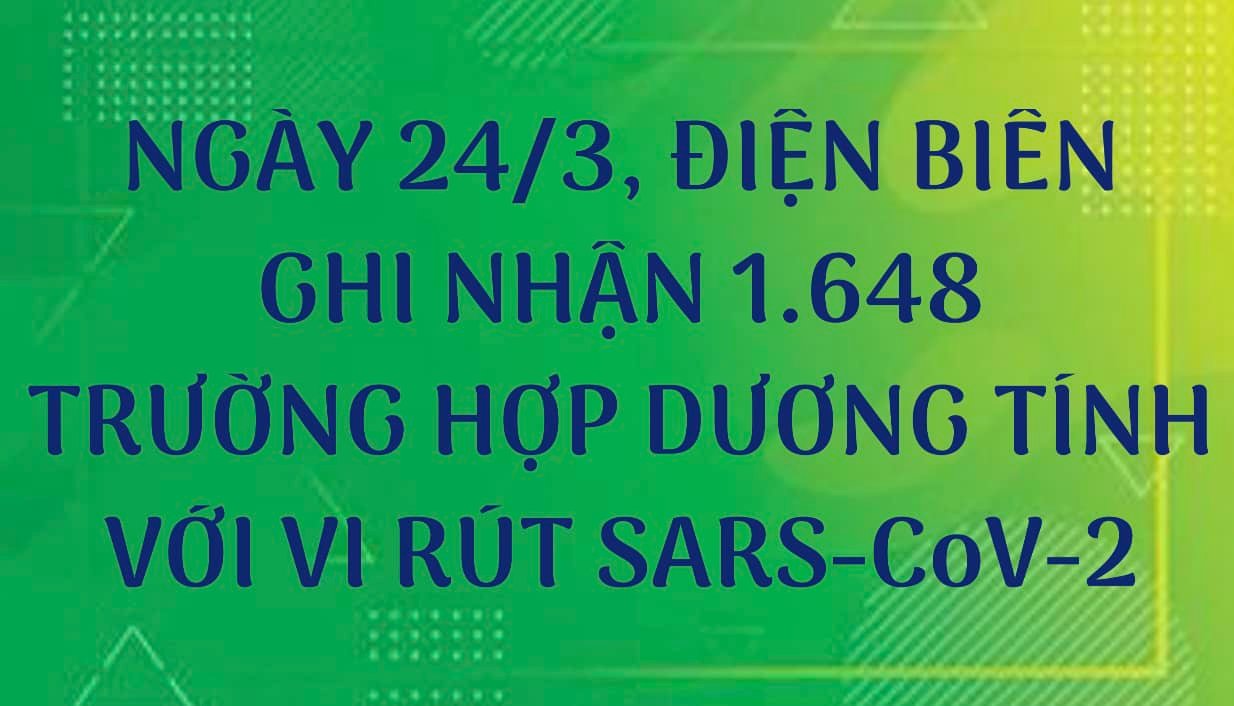 25/03/2022Tính từ 18h00 ngày 23/3/2022 đến 18h00 ngày 24/3/2022 Điện Biên ghi nhận thêm 1.648 trường hợp dương tính với vi rút SARS-CoV-2.