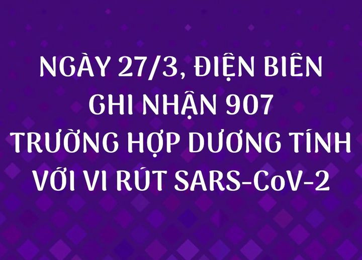 NGÀY 27/3, ĐIỆN BIÊN GHI NHẬN THÊM 907 TRƯỜNG HỢP DƯƠNG TÍNH VỚI VI RÚT SARS - CoV-2