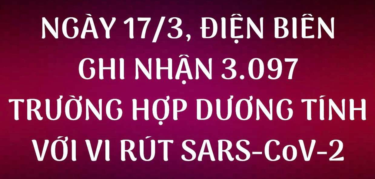 NGÀY 17/3, ĐIỆN BIÊN GHI NHẬN THÊM 3.097 TRƯỜNG HỢP DƯƠNG TÍNH VỚI VI RÚT SARS - CoV-2