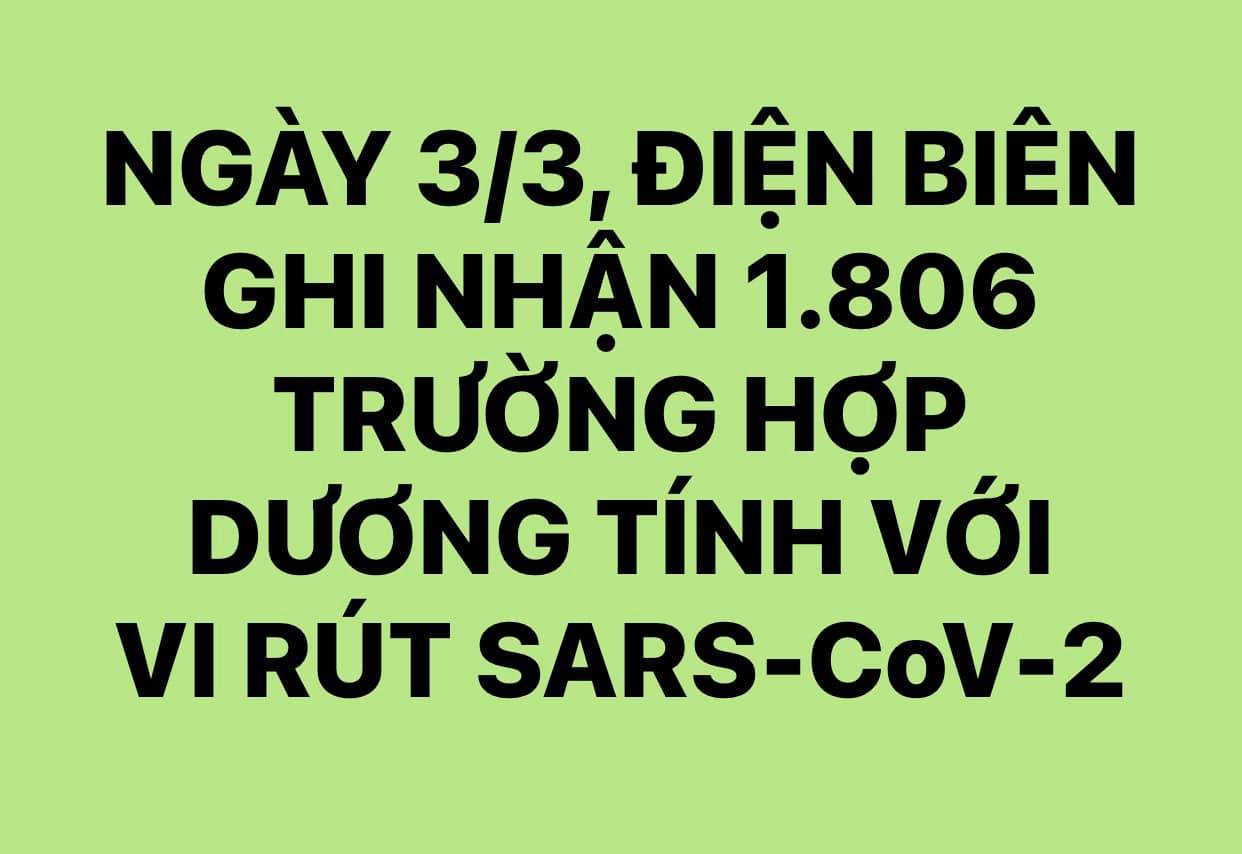 NGÀY 3/3, ĐIỆN BIÊN GHI NHẬN THÊM 1.806 TRƯỜNG HỢP DƯƠNG TÍNH VỚI VI RÚT SARS - CoV-2