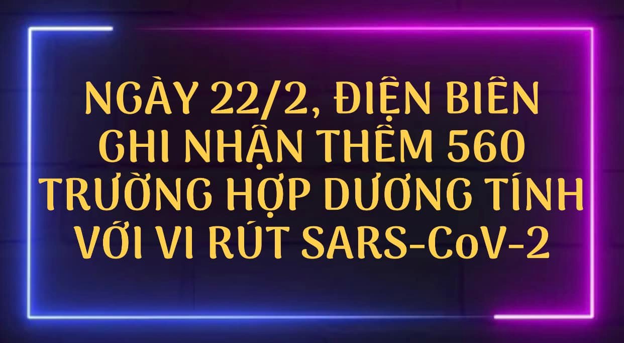 23/02/2022Tính từ 19h00 ngày 21/02/2022 đến 19h00 ngày 22/02/2022 Điện Biên ghi nhận thêm 560 trường hợp dương tính với vi rút SARS-CoV-2.