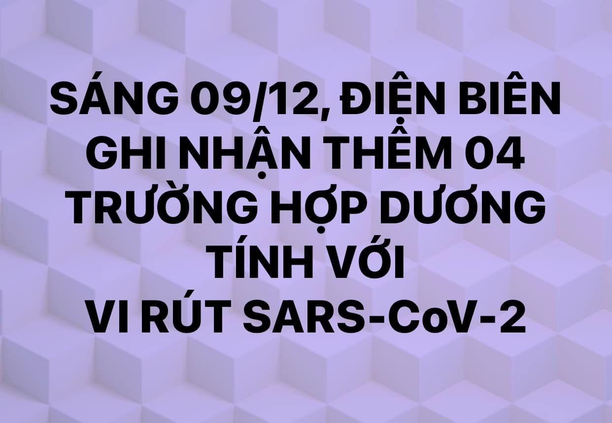 09/12/2021Sáng 09/12, trên địa bàn tỉnh Điện Biên ghi nhận thêm 04 trường hợp có kết quả xét nghiệm dương tính với vi rút SARS-CoV-2 tại huyện Điện Biên và huyện Mường Chà.